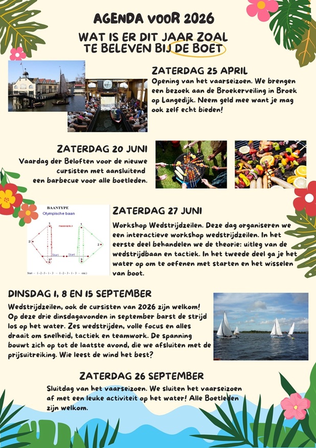 De activiteiten zijn onderstaand en in de agenda aangegeven.